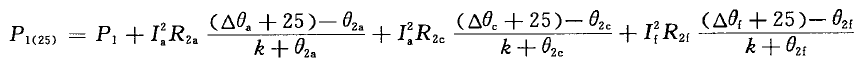 用直接法測定電機效率時,如試驗時的冷卻空氣溫度不是25℃,應按照下式5換算到25℃。