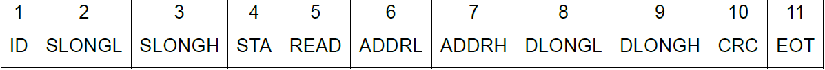 READ:指令識別碼,固定寫入:52,表示該指令為讀指令。