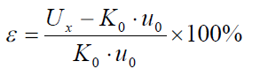 檢定前,應對使用的數字電壓表清零,以消除數字電壓表偏置電流的影響。當加在被 檢直流電壓互感器的直流高壓為檢定點電壓時,用數字電壓表測量標準直流高壓分壓器的 二次輸出電壓 u0 和被測直流互感器的二次輸出電壓 ux。被檢直流電壓互感器的基本誤差按下式計算: