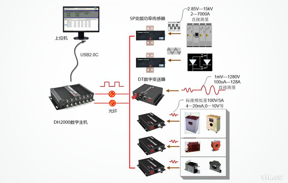 DH2000數(shù)據(jù)采集系統(tǒng)的精度指標取決于采用的前端數(shù)字化產(chǎn)品:SP系列變頻功率傳感器和DT系列數(shù)字變送器。