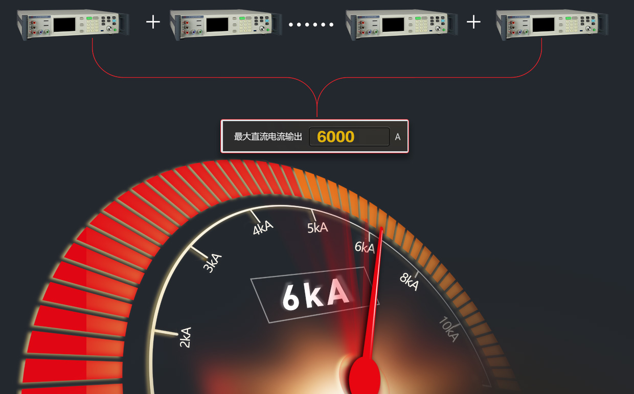 6710C直流標準電流源支持多臺電流源并聯輸出,最大直流電流輸出可達6000A。